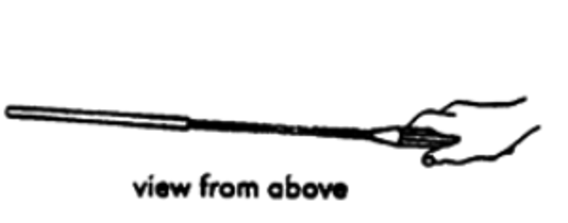 Let hierbij goed op de plaatsing van de duim en de wijsvinger. De onderzijde van de handpalm is dan tegen de onderzijde (verdikking) van de grip geplaatst.